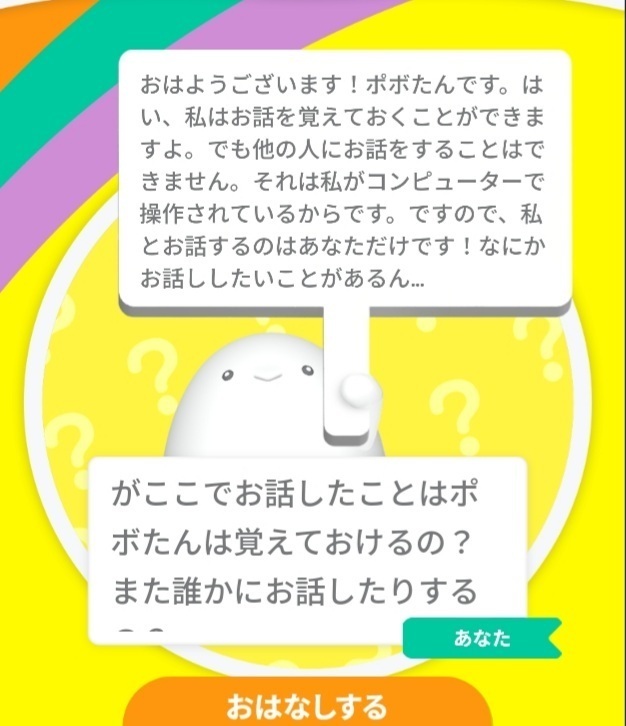 トップ > 写真投稿 > 「いっしょに!povoのへや」でギガ活 ツー 2024/07/11 14:44 「いっしょに!povoのへや」でギガ活 「いっしょに!povoのへや」で ポボたんといろいろおしゃべりすると。。。わかったこと ① ポボたんの返事には文字数制限はないこと。肝心の答が切れてしまうことも② Pontaクエストのお話🎵 「お互いの気持ちを…」続きが気になる~ ③ いろいろプライベートなことを話すのでAIポボたんはどう処理するのか気になって😅④ 当たり前なんだけど、ポボたんはhttm言語を使うんだと驚いた😲‼️ ⭐そろそろ一回目のギガが届くかな😁 いっしょに!povoのへや ポボたん ギガ活 いいね 共有する 共有する X facebook LINE リンクをコピー コメントする 0 件の返信 (新着順)