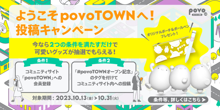 【本キャンペーンは終了いたしました】ようこそpovoTOWNへ 投稿キャンペーン!