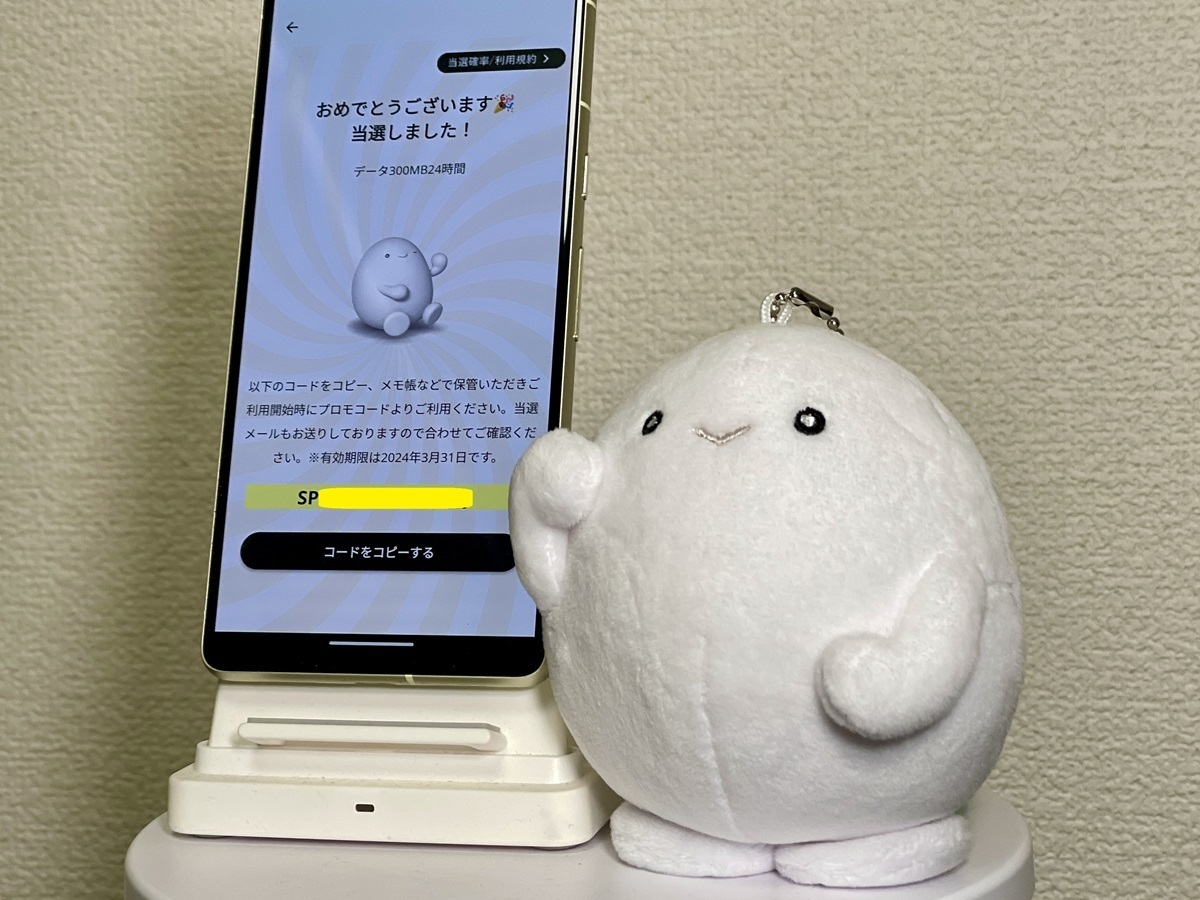 トップ > 写真投稿 > 無料で挑戦!povoルーレット 回したよ! たかやす 2024/02/14 19:27 無料で挑戦!povoルーレット 回したよ! 対象者限定のpovoルーレット、夕方にさんぽしてたらメールが来ました。 結果は3等:データボーナス300MB(24時間)です~。 povo2.0を3回線所有しているので、もう一回挑戦できるかなw 3等でも、めっちゃ嬉しいです。ありがとうございました。 povoルーレット いいね 共有する 共有する X facebook LINE リンクをコピー コメントする 0 件の返信 (新着順)