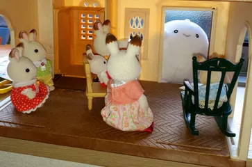 シルバニアファミリー訪問 ショコラウサギさんちへ遊びにいきました玄関から入ろうとしたんだけど、povoたんは入れず💦 庭から入れてもらいました😚その後みんなで記念写真を撮ったよ📷⚡️