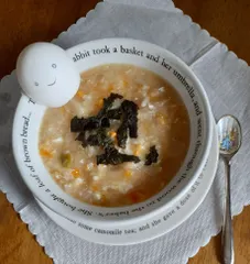 鍋の翌日のお楽しみ♪ 鴨鍋の雑炊昨晩は大好きな鴨鍋。葱を沢山貰ったから。当然だけと鴨は来なかった。。。だから合鴨は購入した。たらふく食べて飲んで、美味しかったなぁ~。~~~~~~鴨鍋の後のお楽しみは雑炊。トークテーマの「トッピング」でも書いたけど、ホント美味しいんだ🍲☺️きょうはご飯が少なかったからお餅を入れた。もちろん