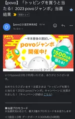 こちらも当選通知 投稿写真2023ふゆの当選通知と。Povoトッピングを買うとジャンボの方も当選していて早速プロモコードを入力しました(*^^*)ありがとうございますpoっ💛