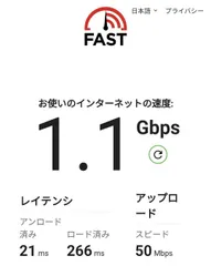 povo2.0の速度測定結果【代々木駅近辺】 用事があって東京に行ったので、povo2.0のスピードテストをしてみました。場所は代々木駅近辺で、電波は5Gです。 結果はダウンロード速度 1.1Gbps✨家のNURO光より速かったです。さすがにレイテンシやアップロード速度は、まだ光回線に劣ります。ただ、自宅のネット回線もモバイルで充分に